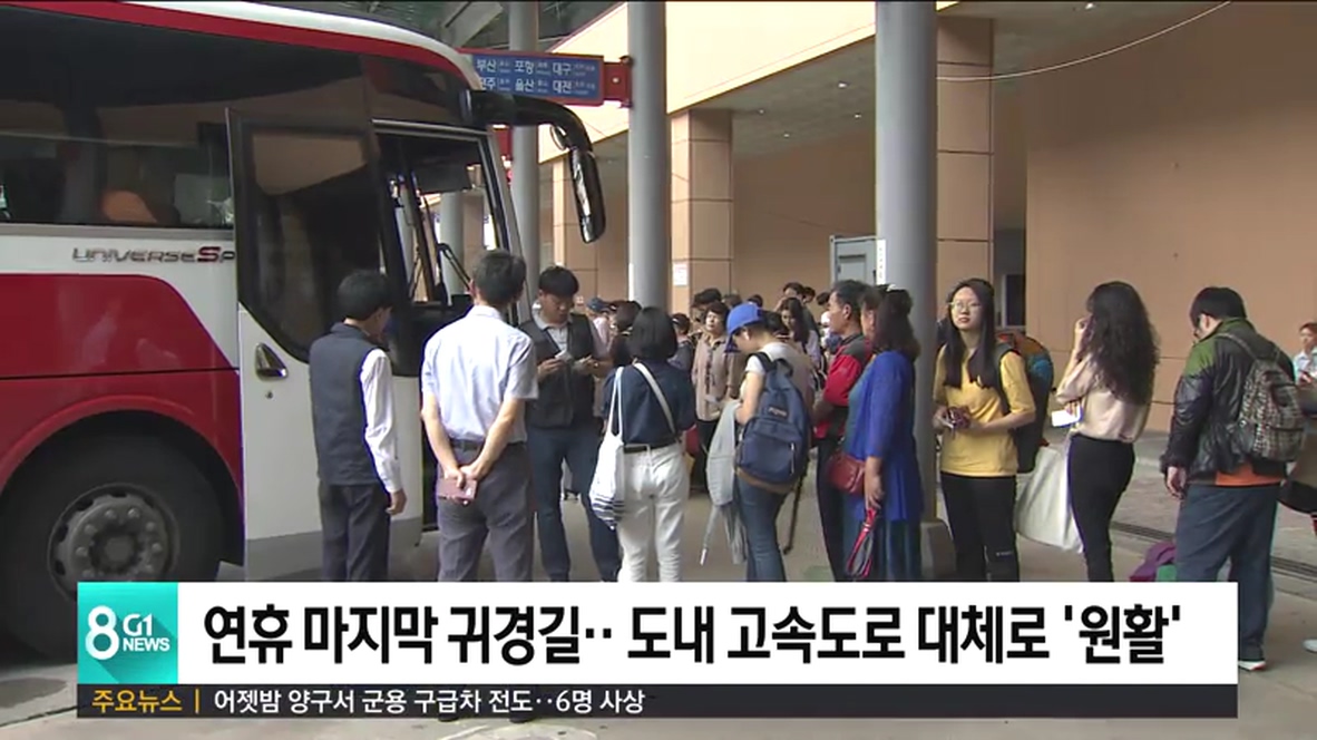 추석 연휴 마지막 날인 오늘, 도내 주요 버스터미널과 기차역은 막바지 귀경길에 오른 사람들로 붐볐지만, 고속도로는 대체로 원활한 소통 흐름을 보였습니다.