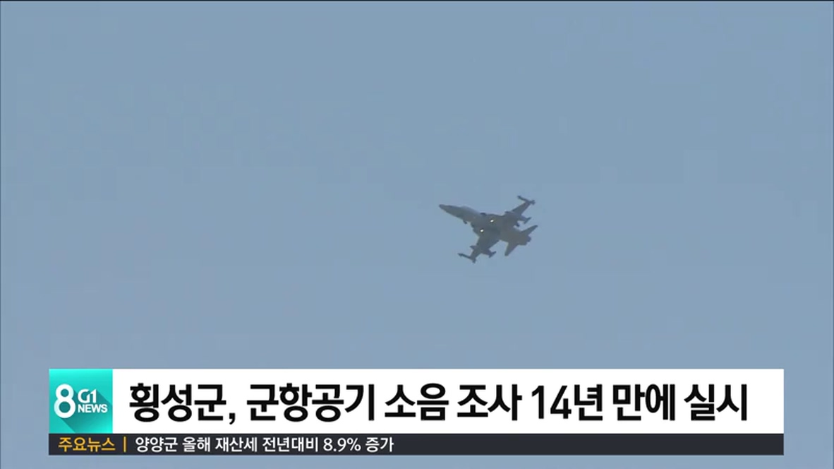 오늘부터 오는 22일 사이 오전 8시부터 비행 종료시까지, 공군 8전투비행단과 인접한 횡성지역 11개 지점과 원주지역 4개 지점 등 총 15곳에서 소음도 측정을 실시합니다.