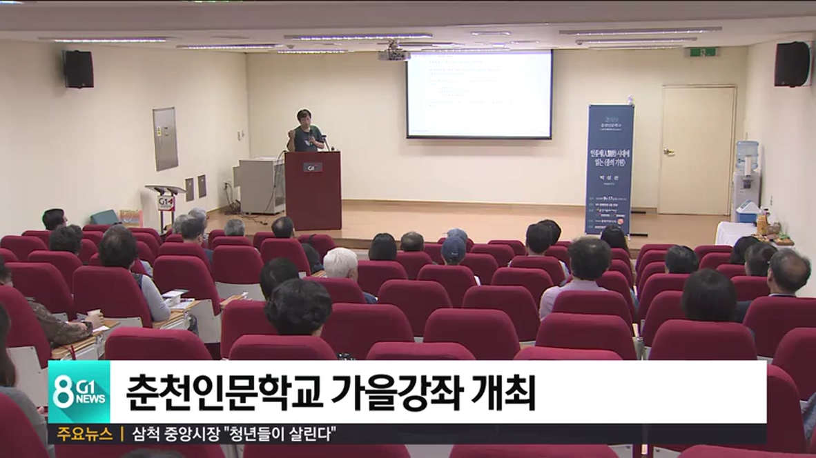 G1 강원민방과 G1문화재단, 사단법인 문화커뮤니티 금토가 주최하는 춘천인문학교는 지역의 대표 인문학 강좌로, 각계 전문가들이 강사로 나와 사회 문제와 인생에 대한 폭넓은 시각을 공유하고 있습니다.