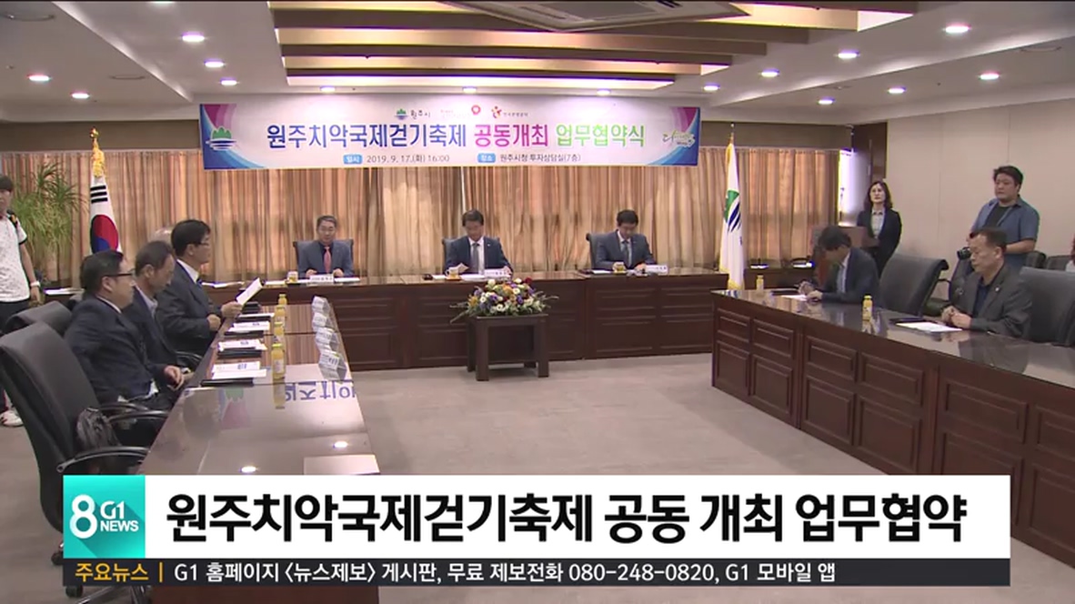 원주시와 국민건강보험공단, 한국관광공사는 오늘 원주시청에서 2019 원주치악국제걷기축제 공동 개최를 위한 업무협약을 체결했습니다.