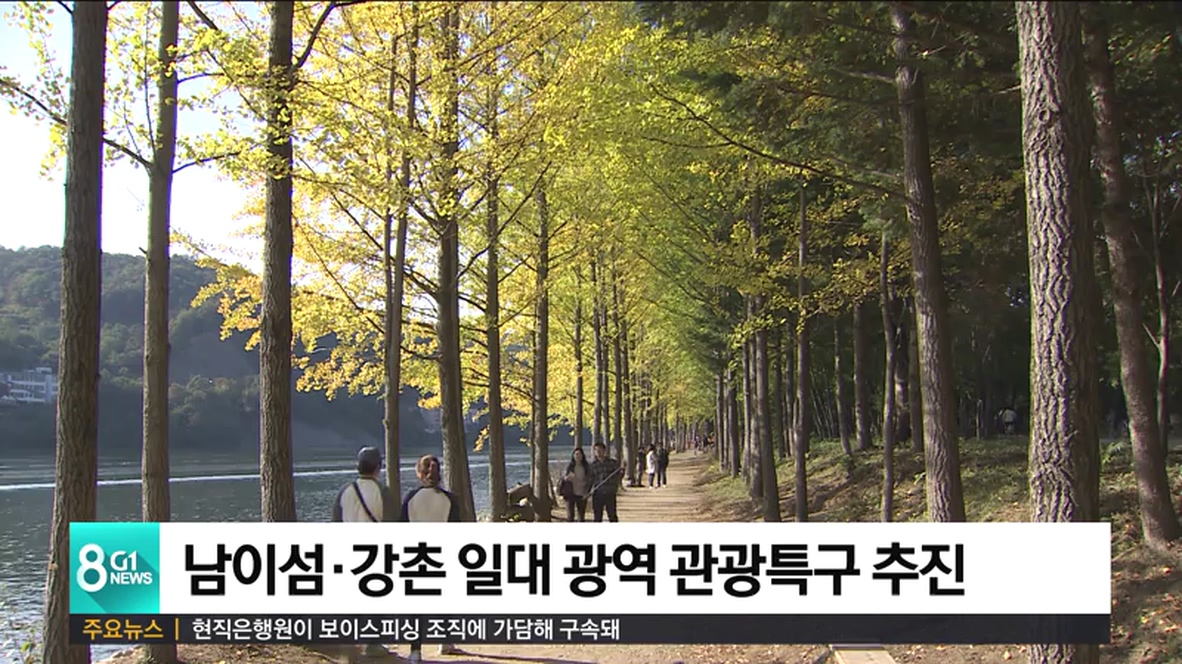 남이섬과 강촌 일대에 대해 전국 처음으로 광역 관광특구 지정이 추진됩니다.