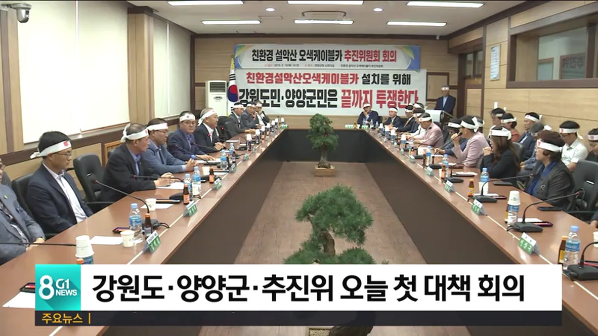 강원도와 양양군, 오색케이블카 추진위원회는 환경부의 설악산 오색케이블카 부동의 결정에 대응하기 위한 첫 대책회의를 열었습니다.