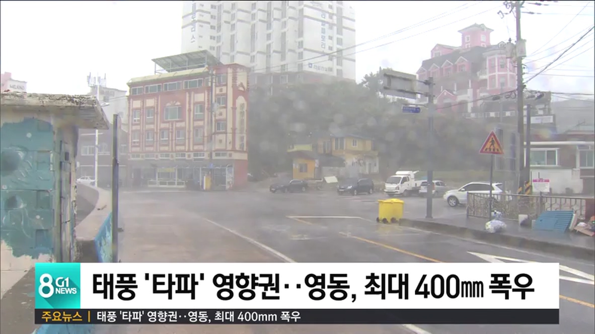 태풍 '타파' 영향권..영동, 최대 400mm 폭우