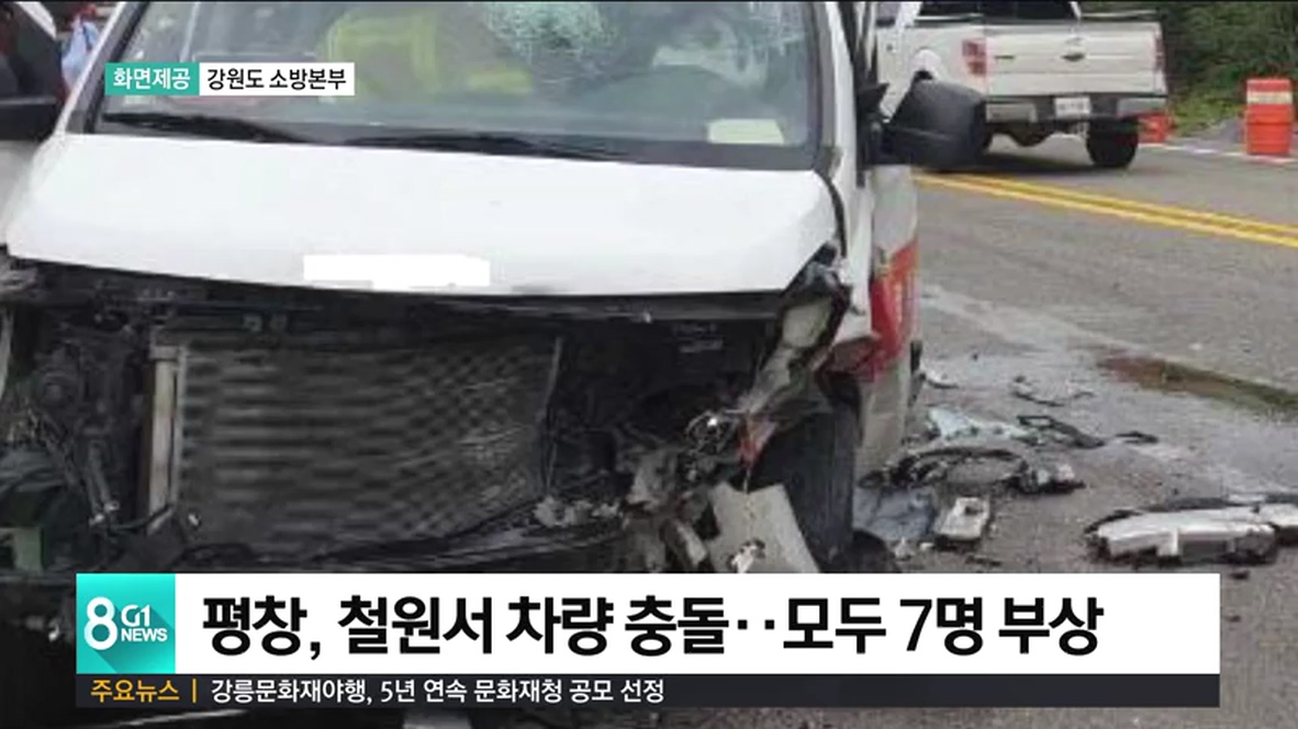 오늘 오후 12시 4분쯤 평창군 대화면 대화리의 한 도로에서 스타렉스 승합차와 포르테 승용차가 부딪혔습니다.
