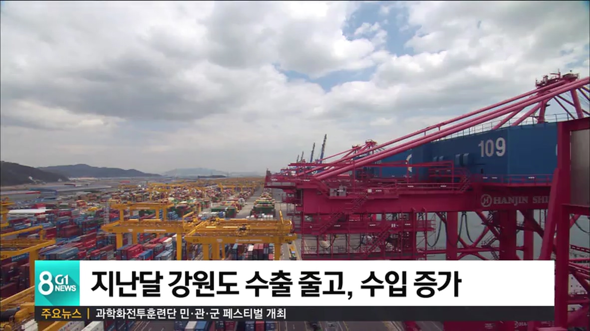 지난달 강원도의 수출은 지난해 같은 기간보다 8.3% 감소한 1억 6,939만 달러를 기록했고, 수입은 6.1% 증가한 3억 5,680만 달러를 기록한 것으로 나타났습니다.