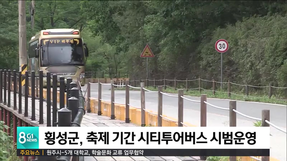 횡성군은 가을 여행시즌을 맞아 최근 노선과 주차장을 새롭게 단장한 횡성호수길과 KTX횡성역사를 오가는 시티투어버스를 시범운영합니다.