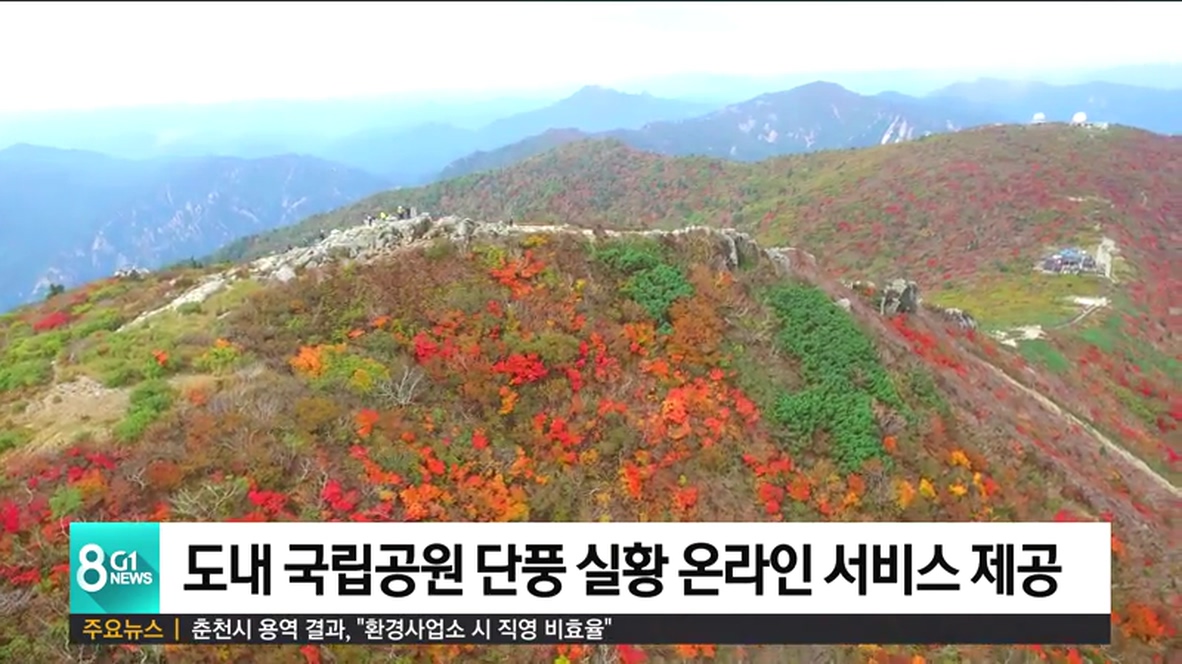 설악산 등 도내 국립공원 4곳에 대한 단풍 실황 서비스가 다음달 31일까지 온라인을 통해 제공됩니다.