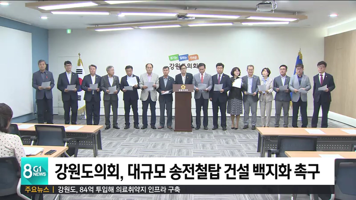강원도를 가로지르는 대규모 송전철탑 건설과 관련해 도민들의 반발이 거세지는 가운데, 강원도의회가 사업 전면 백지화를 촉구하고 나섰습니다.