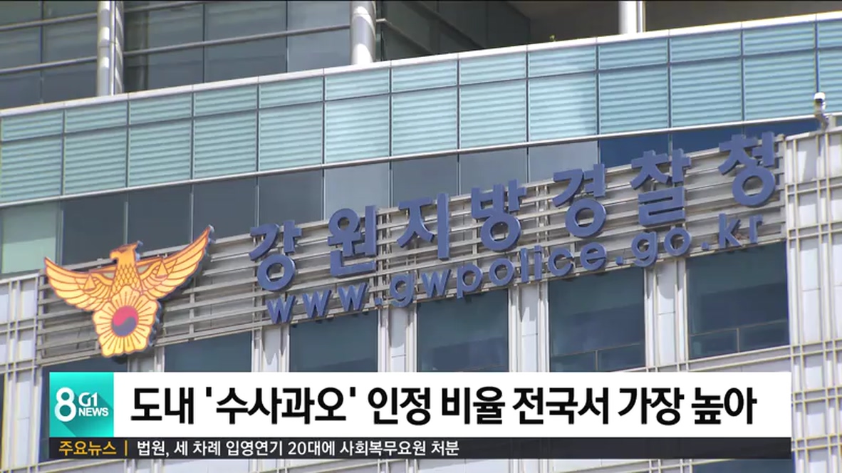 최근 5년 동안 강원도에서 '편파 수사'등으로 수사결과에 제기한 이의신청이 인정된 '수사과오 인정 비율'이 전국에서 가장 높은 것으로 조사됐습니다.