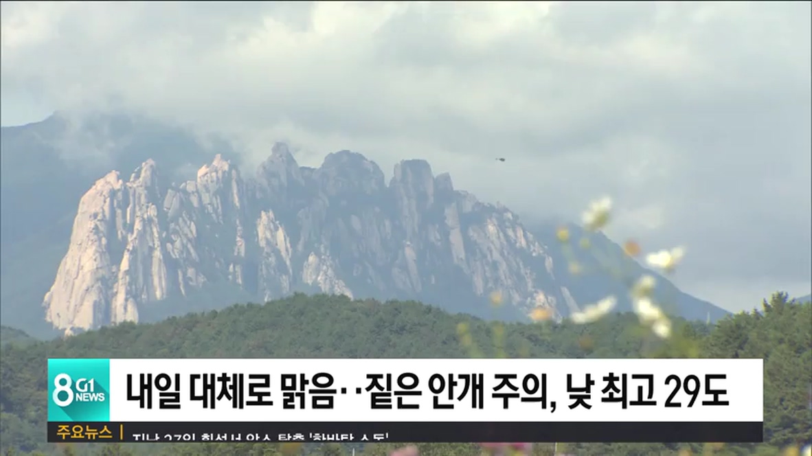 내일 강원도는 대체로 맑겠습니다.