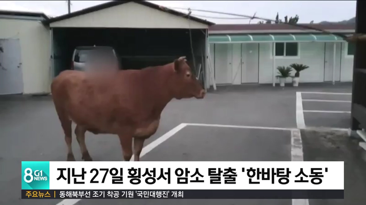 지난 27일 횡성서 암소 탈출 '한바탕 소동'