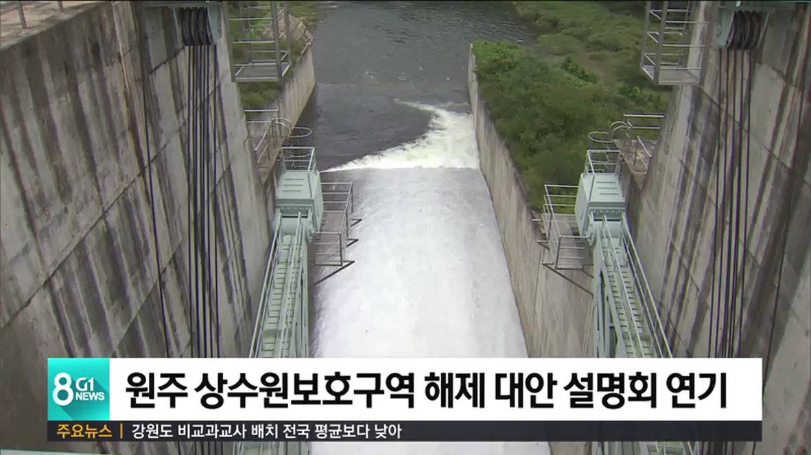 환경부가 오늘 원주와 횡성지역 주민들을 대상으로 열기로 했던 원주 상수원보호구역 해제 대안 설명회를 일방적으로 취소하고, 다음달 4일로 연기했습니다.