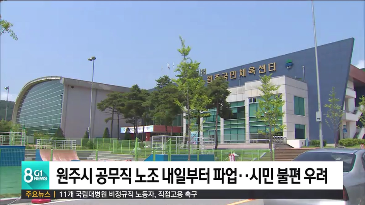 원주시는 공무원과 비노조 공무직 직원 등을 투입해 행정업무 차질을 최소화한다는 계획이지만, 자격증 강사가 필요한 국민체육센터 등 4곳의 수영장은 내일부터 임시 휴관합니다.