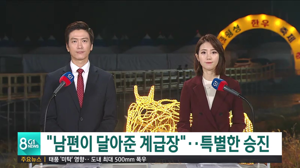 "이렇게 기쁜 날에 와이프가 계급장을 달아주니까 나름 더 뜻 깊은 승진 임용식이었던 것 같습니다. 와이프에게 더 잘해야 되겠고."