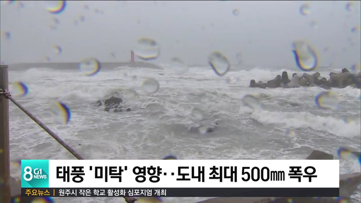 태풍 '미탁' 영향..도내 최대 500mm 폭우