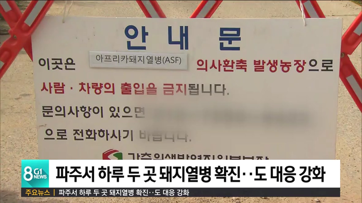 한편, 파주시 파평면과 적성면 두 곳의 돼지농가에서 의심신고됐던 아프리카돼지열병이 모두 확진됨에 따라, 파주에서만 4번째, 국내에서는 11번째 발생했습니다.