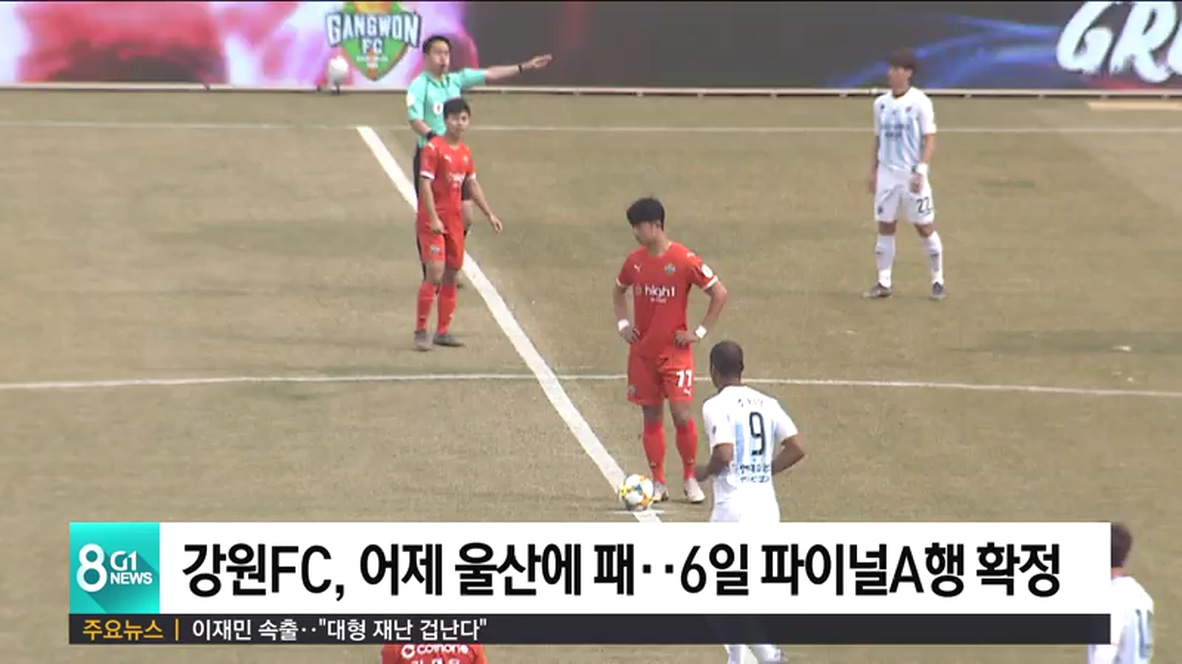 강원은 현재 승점 46점으로 리그 5위에 올라있어, 리그 6위까지 주어지는 상위스플릿인 '파이널A' 진출 확정은 오는 6일 오후 2시 상주와의 정규리그 최종전에서 결정될 전망입니다.