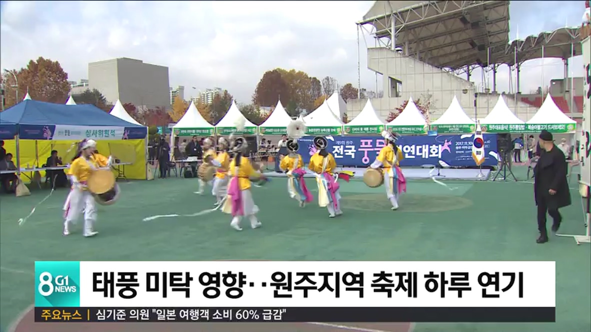 태풍 미탁의 영향으로 오늘 예정됐던 삼토페스티벌과 문화재 야행 등 원주지역의 축제 일정이 내일로 하루 연기됐습니다.
