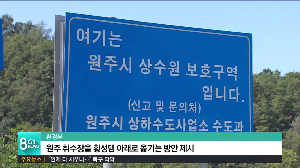 환경부가 원주 상수원보호구역 해제를 위한 대안으로, 현재 원주 장양취수장을 횡성댐 아래로 옮기는 방안을 제시해, 파장이 일고 있습니다.