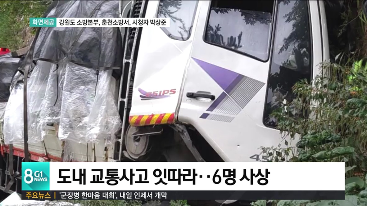 오후 3시 42분쯤에는 춘천시 신동면 증리 인근 도로에서 2.5톤 트럭이 가드레일을 들이받아,