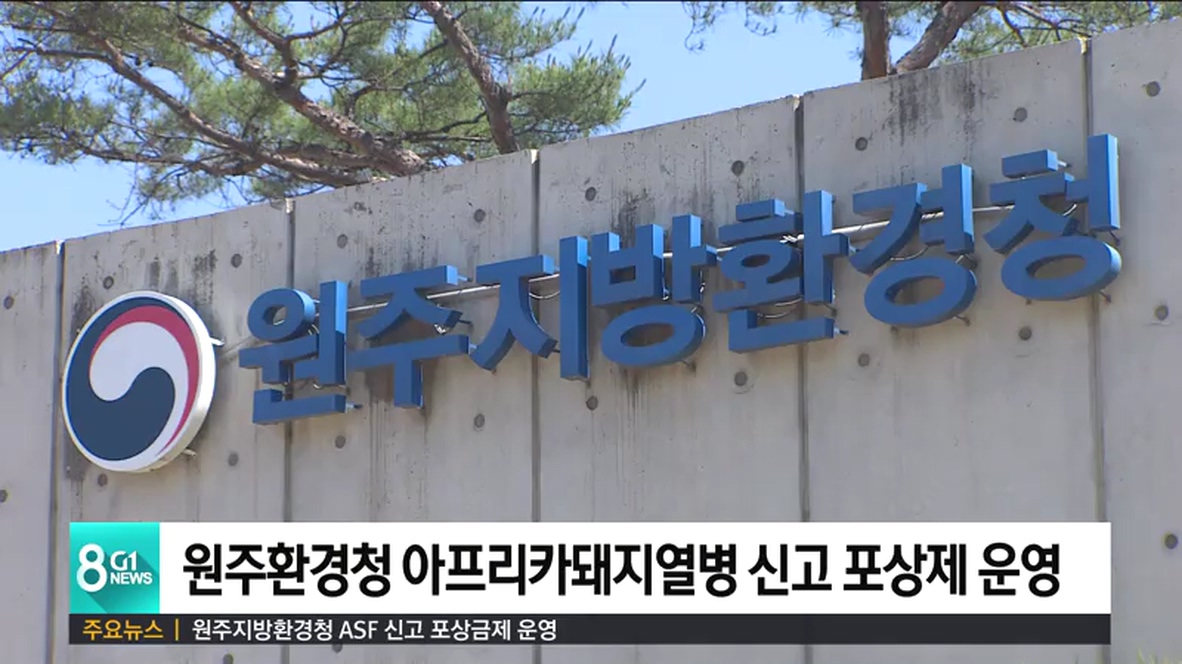 원주지방환경청이 아프리카돼지열병 확산 방지를 위해 신고 포상금제를 운영합니다.