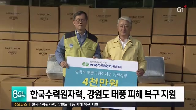 한국수력원자력이 '제18호 태풍 미탁'으로 피해를 입은 강원도 지역의 피해복구 지원에 나섰습니다.