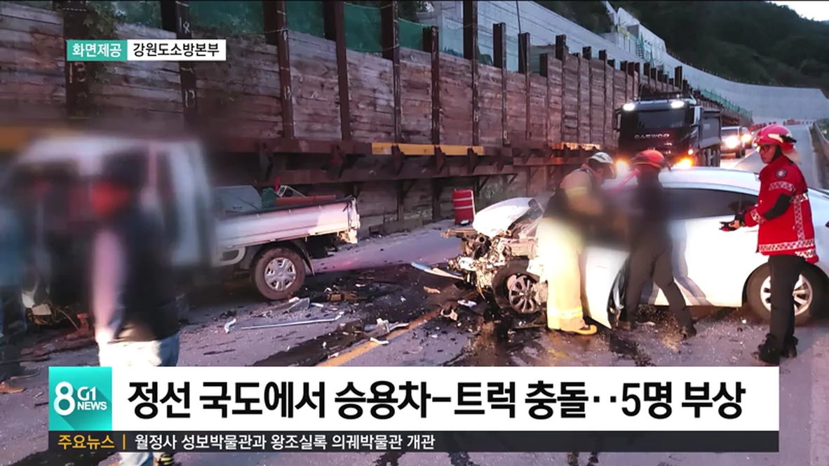 정선 국도에서 승용차-트럭 충돌..5명 부상