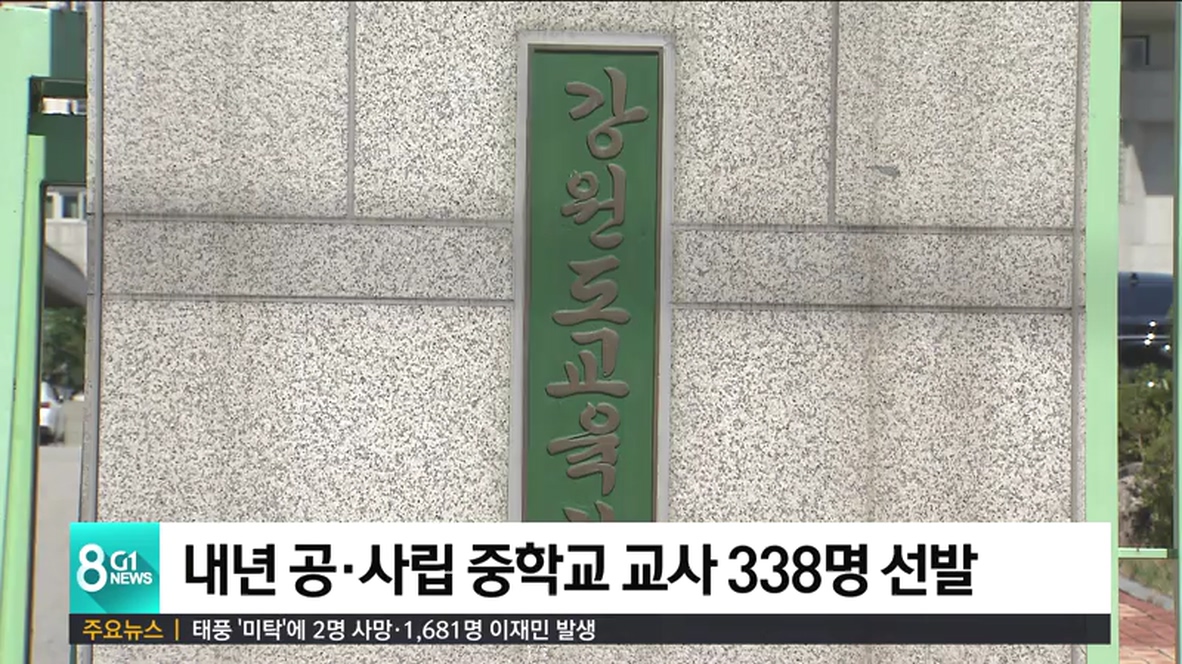 강원도교육청은 내년에 공·사립 중학교 교사 3백38명을 선발한다고 밝혔습니다.