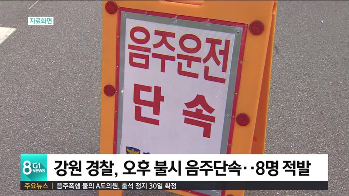 강원지방경찰청은 오늘(15일) 오후 도내 곳곳에서 불시 음주단속을 벌인결과, 8명이 적발됐다고 밝혔습니다.
