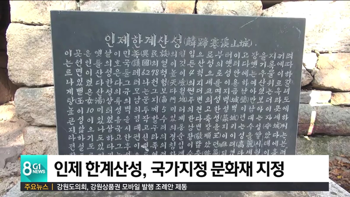 인제 한계산성이 오는 21일 국가지정 문화재 사적 533호로 지정·고시될 예정입니다.