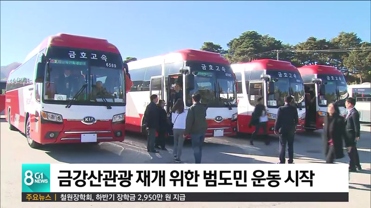 금강산관광재개 범도민운동본부는 오는 21일 강원대학교에서 도민 천여 명이 참여하는 금강산관광 재개 범도민 운동 발대식을 갖고, 천만 명 서명 운동에 돌입할 계획입니다.