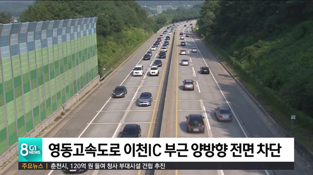영동고속도로 이천IC부근 양방향 전면 차단