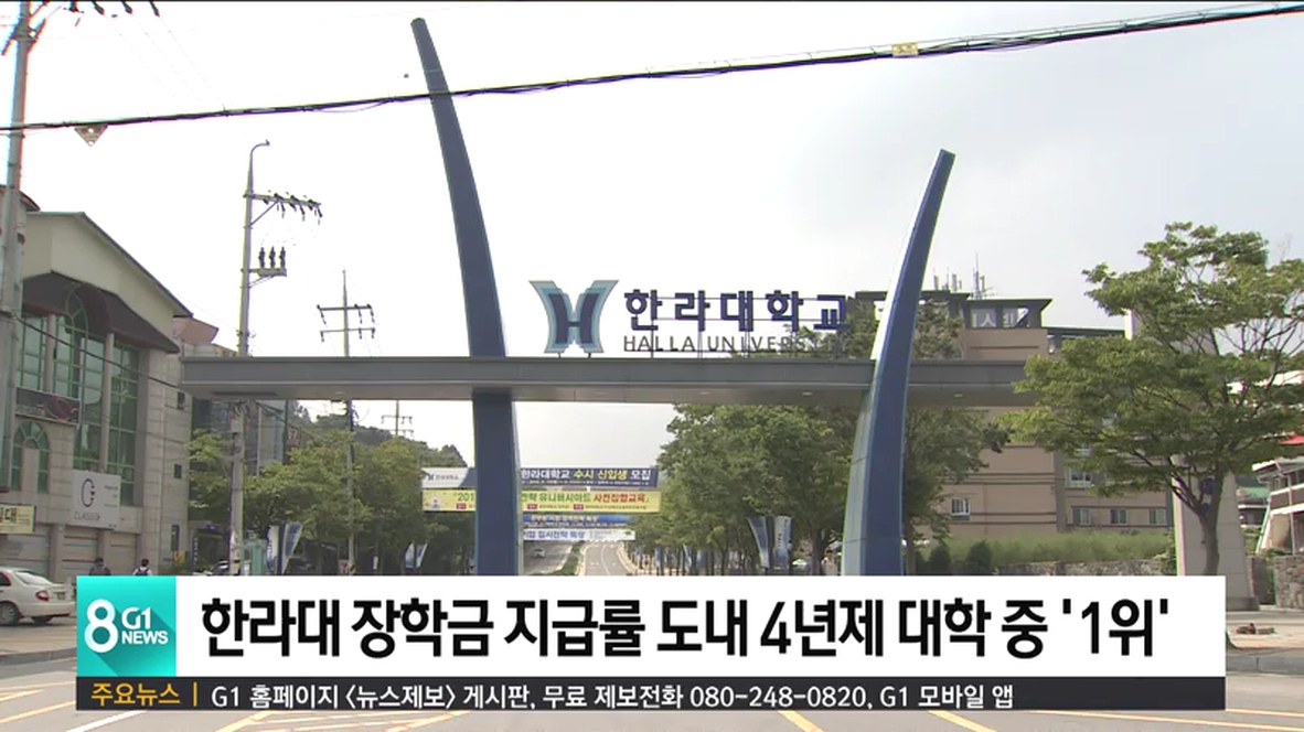 한라대 장학금 지급률 도내 4년제 대학 중 '1위'