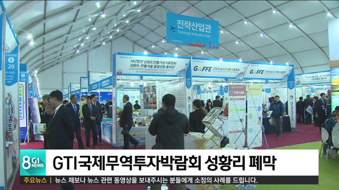 동북아시아 경제 한류 축제로 원주에서 열리고 있는 GTI 국제무역 투자박람회가 연일 수많은 해외 바이어와 관광객이 몰린 가운데 오늘 성황리에 폐막했습니다.