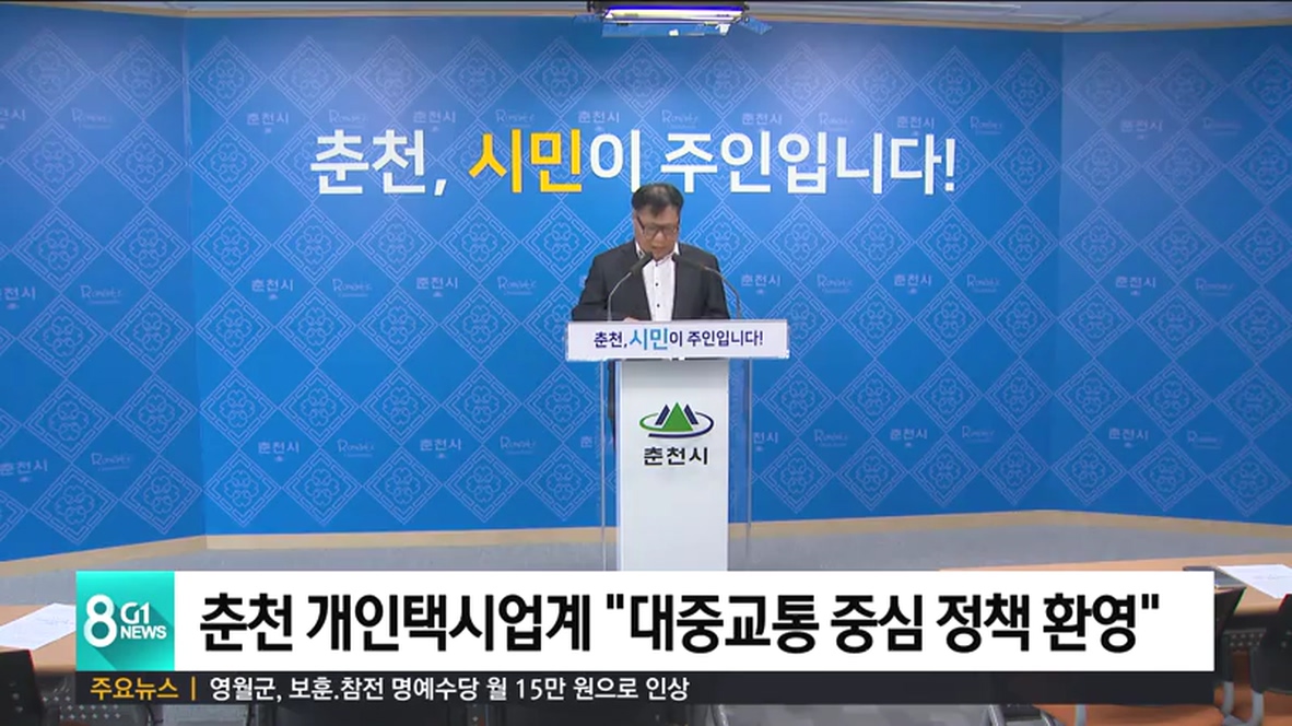 강원도 개인택시 운송사업 조합 춘천시지부는오늘(21) 춘천시청에서 기자회견을 열고, "춘천시의 대중교통 중심 정책을 환영한다"고 밝혔습니다.