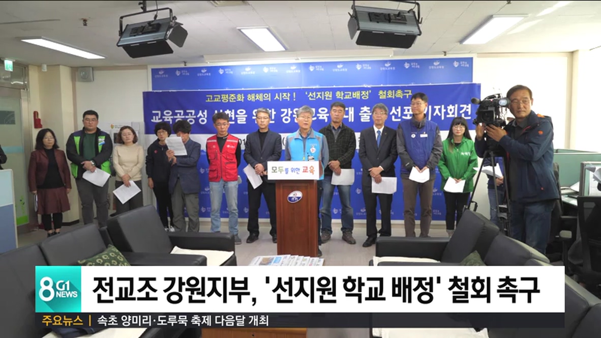전국교직원노동조합 강원지부와 19개 교육 관련 단체는 오늘(21일) 강원도교육청에서 기자회견을 열고 선지원 학교 배정 방식의 철회를 촉구했습니다.