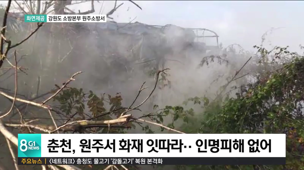춘천, 원주서 화재 잇따라..인명피해 없어