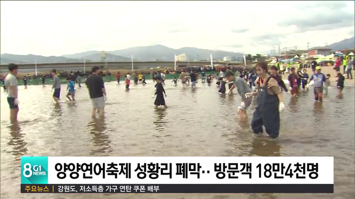 양양군축제위원회는 지난 24일부터 오늘(27일)까지 외국인 방문객 천200명을 포함해 모두 18만4천명이 축제장을 찾은 것으로 잠정 집계했다고 밝혔습니다.