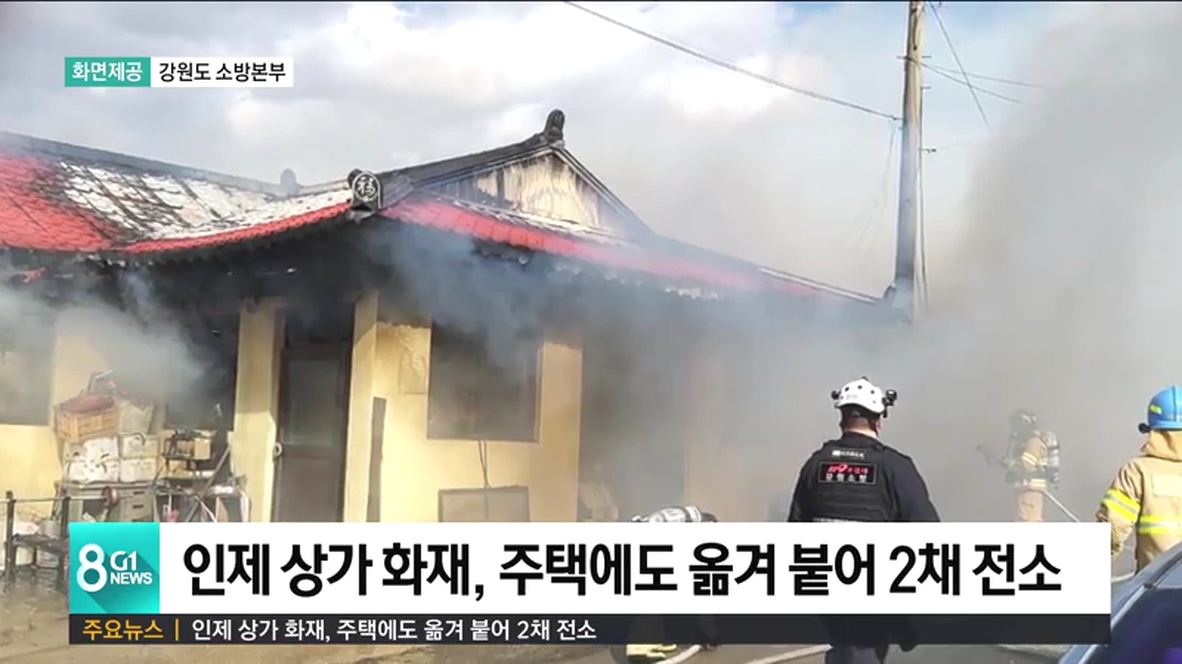 인제 상가 화재, 주택에도 옮겨 붙어 2채 전소
