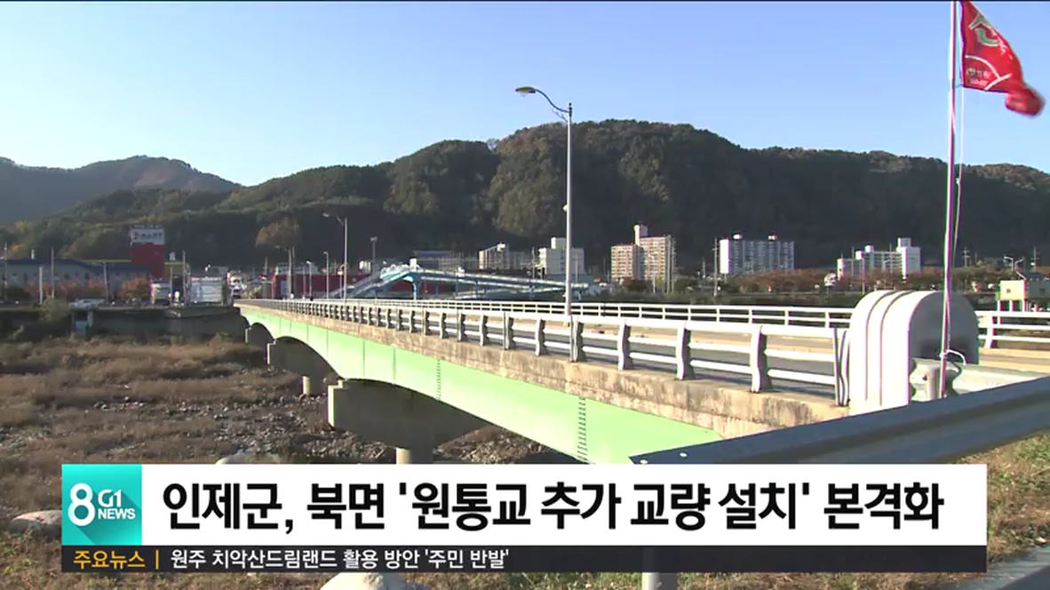 인제군은 북면 주민들의 숙원사업인 '원통교 추가 교량 설치'를 본격화 할 예정이라고 밝혔습니다.