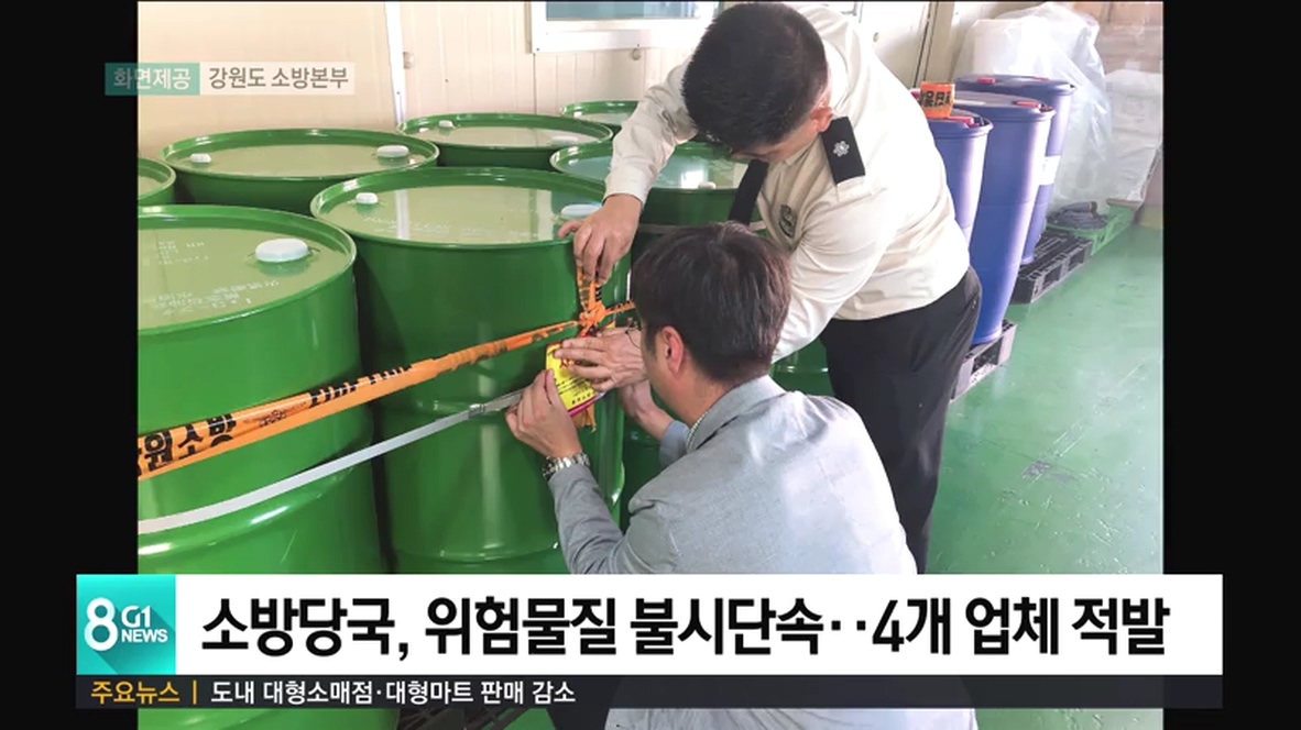 강원도소방본부는 허가받지 않고 위험물을 저장하거나 취급하는 것으로 의심되는 공장들을 대상으로 불시단속을 벌인결과, 도내 4개 업체가 적발됐다고 밝혔습니다.