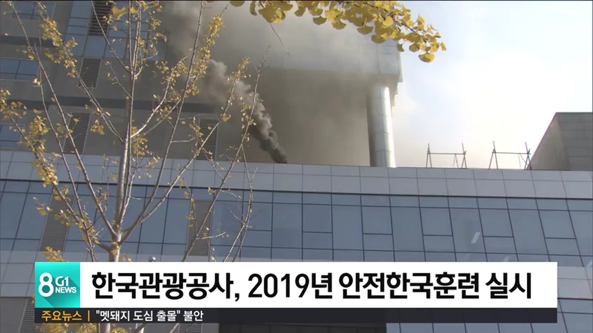 한국관광공사와 문화체육관광부는 2019년 재난대응 안전한국 훈련의 일환으로 오늘 관광공사 본사에서 긴급구조 종합훈련을 실시했습니다.