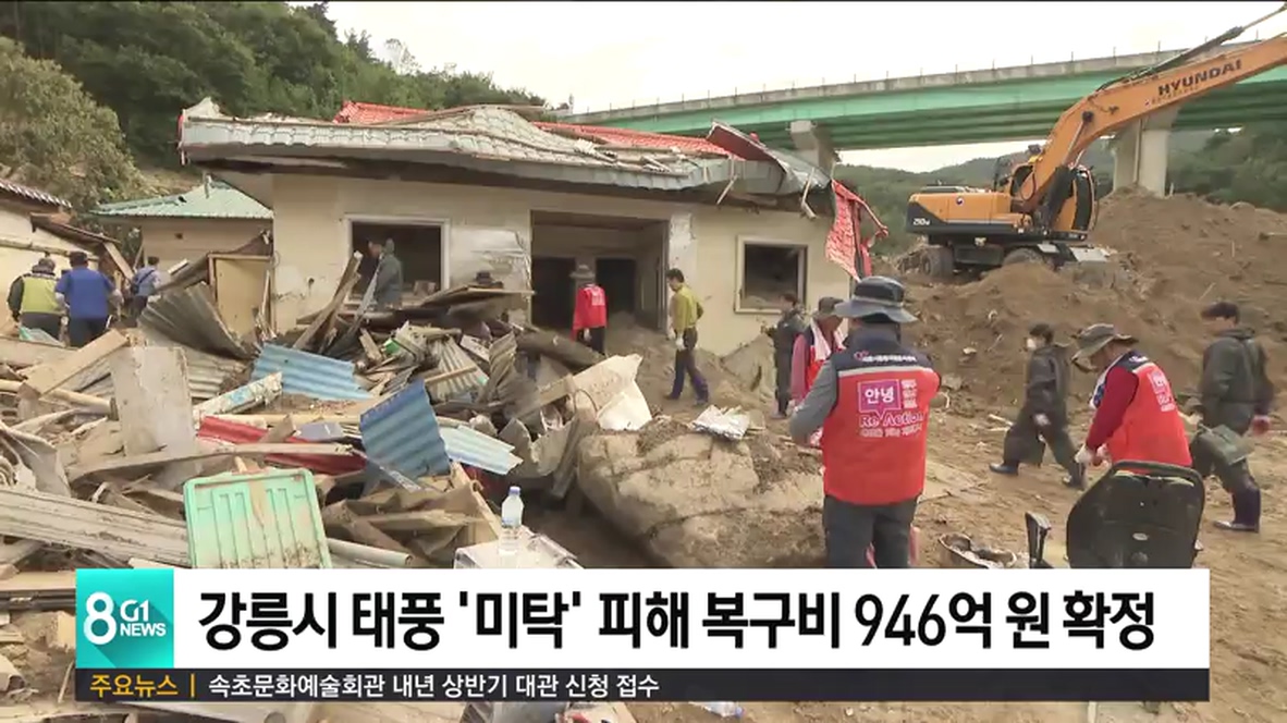 제18호 태풍 미탁으로 피해를 본 강릉지역의 복구비가 946억 원으로 최종 확정됐습니다.