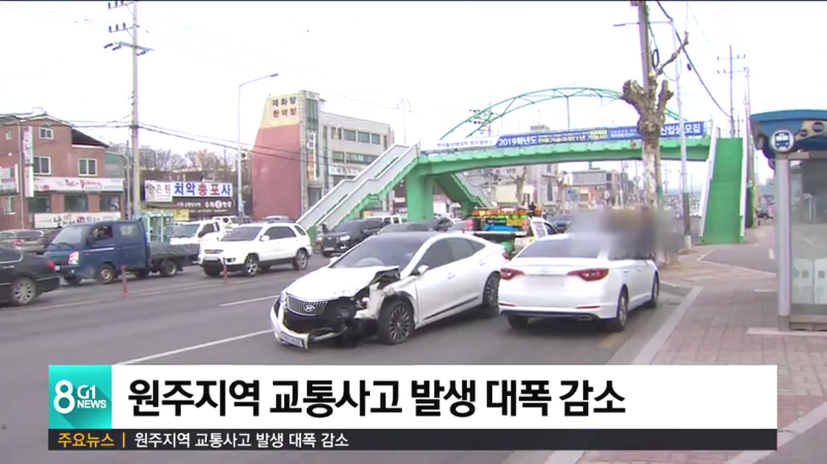 지난해 원주지역의 교통사고 발생 건수가 크게 줄어든 것으로 나타났습니다.