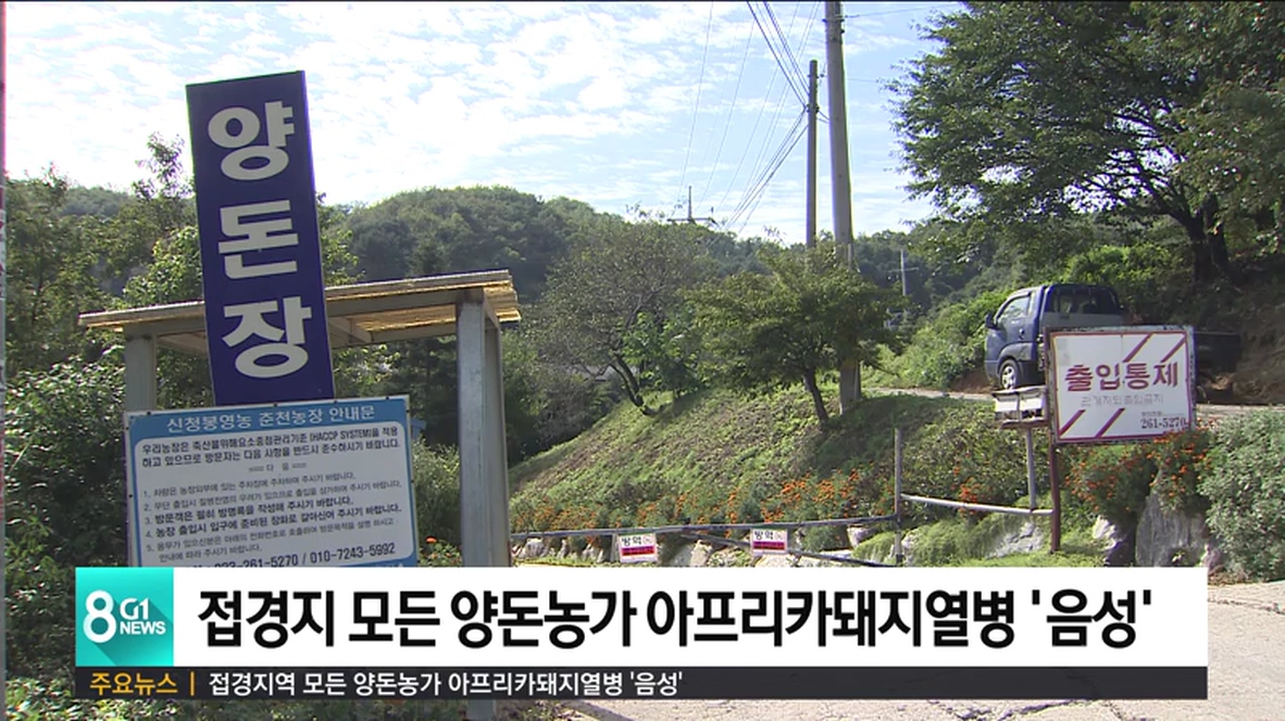 도내 접경지역 모든 양돈농가에서 아프리카돼지열병 바이러스가 검출되지 않은 것으로 나타났습니다.