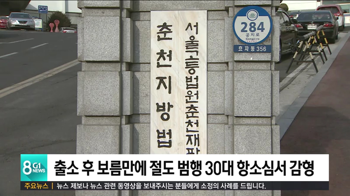출소 후 보름만에 절도 범행 30대 항소심서 감형