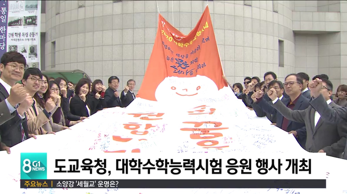 또, 지난 1일부터 도내 18개 시·군 지역 교직원들이 참여해 만든 응원 현수막을 본청 외벽에 설치해 수험생들을 응원했습니다.