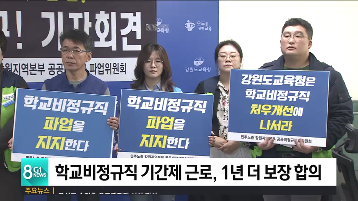 강원도교육청과 학교비정규직연대회의가 학교 청소원과 당직 전담원 등 특수 운영직군의 정년 후 재임용 관련 협상을 재개해 최종 합의했습니다.