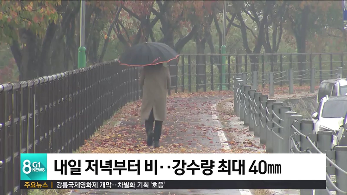 강원지방기상청은 내일 오후부터 산지와 동해안을 중심으로 비와 함께 강한 바람이 불겠다며, 시설물 관리에 주의를 당부했습니다.
