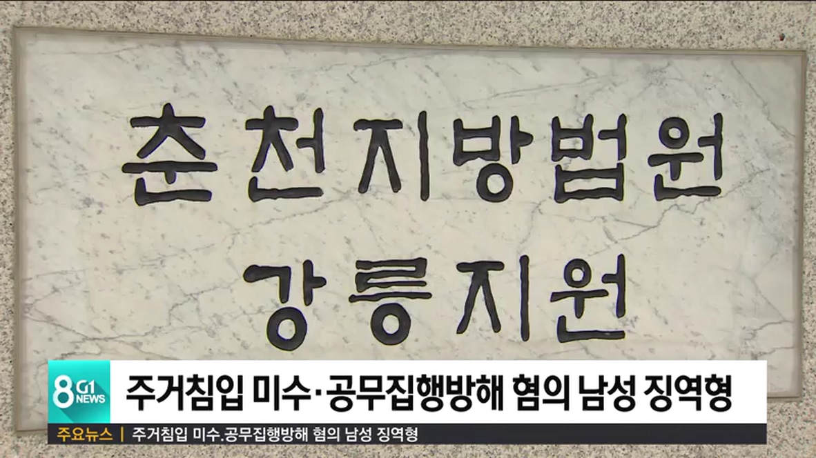 춘천지법 강릉지원 형사2단독 이여진 부장판사는 주거침입미수와 공무집행방해 혐의로 기소된 29살 A씨에게 징역 8개월에 집행유예 2년을 선고했습니다.